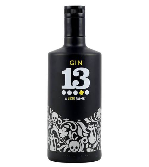 Descrição: Um Gin de aparência jovem, com leves notas de lúpulo, mas com um final fresco e cítrico. Ele transmite a mensagem mística de que a sorte chega, daí seu nome é Gin 13 – o design da garrafa também transmite essa simbologia associada ao “número azarado” com o uso de gato preto, trevo e caveiras. O 13º ingrediente deste Gin é o lúpulo, usado em cervejas artesanais. O Gin 13 é o primeiro Gin português de spin com 13 plantas: zimbro, sementes de coentro, limão, tangerina, cardamomo, gengibre, amêndoa, raiz de angélica, alcaçuz, erva príncipe, flor de jasmim, chá preto e lúpulo.