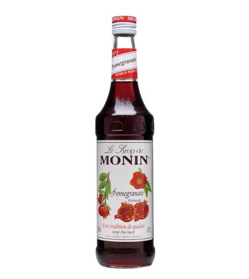 Xarope de Romã Monin com uma cor profunda e um sabor doce e azedo suculento. A romã é famosa por seus benefícios à saúde, sendo uma fonte rica de antioxidantes e polifenóis.